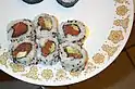Dynamite roll Canada A Western-style sushi, common in Western Canada. Usually contains a piece of prawn tempura and masago (capelin roe), with vegetables like radish sprouts, avocado and/or cucumber, as well as Japanese mayonnaise.