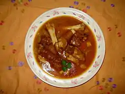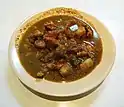 Offal | Italian stew also common in Uruguay and Argentina, similar to Spanish callos, it is made of finely chopped mondongo (beef tripe), potatoes, and legumes such as lentils or chickpeas. | |