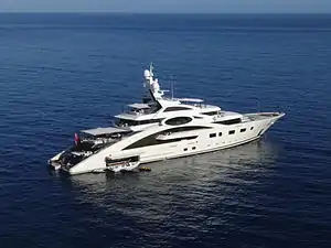 These boats are also known as "megayachts", "gigayachts" and even "terayachts", usually depending on length.[1][2] It has been generally accepted by naval architects and industry executives that superyachts range from 37 m (≈120 ft) to 60 m (≈200 ft), while those over 60 m are known as megayachts and boats over 90 m (≈300 ft) have been referred to as giga-yachts.[3][4]