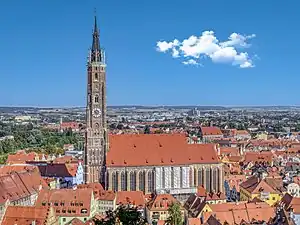 130.6 m (428 ft) | 1500 | Landshut | Catholic | 48°32′03″N 12°09′02″E / 48.534192°N 12.150680°E | Tallest brickwork structure in the world; tallest church in Bavaria | ||