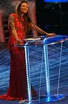 In 2014, she was inducted into the WWE Hall of Fame by her best friend and fellow wrestler Trish Stratus.[60] The next night at WrestleMania XXX, she appeared during transmission while she was introduced as part of the 2014 Hall of Fame class.[61]