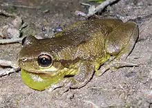 The screaming tree frog (Litoria quiritatus) is a species of frog in the subfamily Pelodryadinae. It is endemic to southeastern Australia, east of the Great Dividing Range. It ranges from northeastern Victoria to the mid-coast of New South Wales, from Mallacoota north to Taree. This species is the "bleating tree frog" that occurs around Sydney, and is well known for its very loud call.[1][2][3]