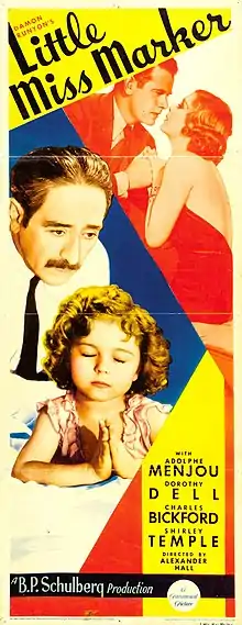 Little Miss Marker (also known as The Girl in Pawn) is an American Pre-Code 1934 comedy-drama film directed by Alexander Hall. It was written by William R. Lipman, Sam Hellman, and Gladys Lehman after a 1932 short story of the same name by Damon Runyon. It stars Shirley Temple, Adolphe Menjou and Dorothy Dell in a story about a young girl held as collateral by gangsters. It was Temple's first starring role in a major motion picture and was crucial to establishing her as a major film star. It was inducted into the National Film Registry by the Library of Congress in 1998 [1][2] and has been remade several times.