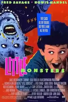 Little Monsters is a 1989 American fantasy comedy-drama film starring Fred Savage and Howie Mandel and directed by Richard Alan Greenberg.[2][3] It tells the story of a boy who befriends a real-life "monster under the bed" and discovers a secret world of monsters who sneak into children's bedrooms at night to pull pranks on them.[4][5] Although the film failed financially, receiving a limited theatrical release due to Vestron’s bankruptcy, it obtained a cult following on home video and is considered a requisite title in the gateway horror genre.
