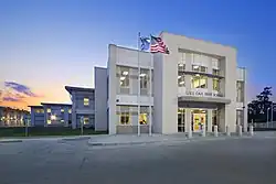 The current high school opened on December 17, 2012, and is located north of the old location on Hwy 16. The school's current location cost $30 million, and faced weather delays from Hurricane Isaac along with delays resulting from copper theft.[2] The school's new campus was significantly larger than the one at the other school which allows for more students to attend class. Live Oak High School played a large role in the return to normalcy following the 2016 floods in Louisiana. Being one of the few high school campuses to not flood in Livingston Parish,[9] Live Oak High School served as a platoon school for Denham Springs High School the fall semester of 2016 which was the most impacted by flooding.[10][11] At the start of the spring semester, Denham Springs High School was able to return to their original campus despite ongoing renovations and rebuilding efforts.