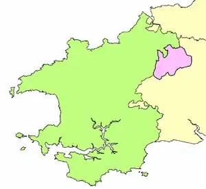 Llanfyrnach Rural District Council was created in 1894 from the part of Newcastle in Emlyn Poor Law Union situated in Pembrokeshire, and consisted of six civil parishes: Capel Colman, Castellan, Clydau, Llanfyrnach, Penrydd and West Cilrhedyn. It continued to be administered from Newcastle Emlyn.[1]