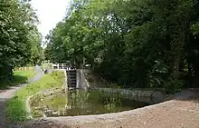 Construction of the canal was supervised by Thomas Dadford Jr.,[3] and further acts of parliament were obtained as the work progressed. An act of 4 July 1797 (37 Geo. 3. c. 100) gave the company powers to extend the navigation, which resulted in the Newport terminus being moved southwards to Potter Street,[4] while a third act of 26 June 1802 (42 Geo. 3. c. cxv) authorised specific railways, and allowed the company to raise additional finance.[2]