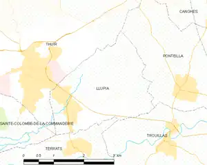 Llupia is located in the canton of Les Aspres and in the arrondissement of Perpignan.
