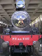 The Russian locomotive class U was a four-cylinder de Glehn compound locomotive, which first appeared in 1906. 62 class Us were built between 1906 and 1916 at the Putilov factory (later the Kirov Plant. By the beginning of 1940 the inventory still listed 47 class U locomotives.[1] The last locomotives were withdrawn in 1952.[1] U-127 is famous for being Vladimir Lenin's locomotive, hence its preservation. It was used to bring his body back to Moscow for his funeral. For this reason it has escaped the ravages of time and, much like Lenin himself, it was preserved in perfect condition. It has not moved since 1948.[2]