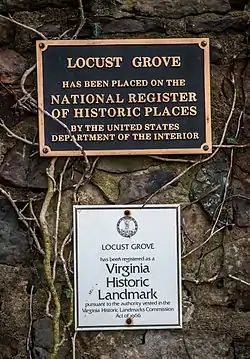 - ↑ Virginia Department of Historic Resources (June 1985). "National Register of Historic Places Inventory/Nomination: Locust Grove" (PDF). Virginia Historic Landmarks Commission. and Accompanying photo