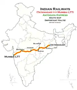 - ↑ INTRODUCTION OF LOKMANYA TILAK TERMINUS -TATANAGAR ANTYODAYA EXPRESS BI-WEEKLY