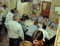 Paul Knight decided it was time for a real shock—a tragic exit for one of the main characters, who had starred in the show for nearly ten years. The man who was to be killed was Sub Officer John Hallam—a dedicated and loyal member of the watch and the London Fire Brigade. Hallam was killed off in 1996 (Series 9) during a huge warehouse fire, where he and his colleague, Leading Firefighter Geoff Pearce, were attempting to rescue four teenage girls on an unstable gantry 80 feet (24 m) above a blaze in the basement. Hallam held the gantry steady for Pearce as he walked across with one of the girls. As Hallam attempted to cross, the gantry cracked and Hallam fell to his death. The writers developed a storyline about Pearce feeling an overwhelming sense of guilt after the accident, which would lead to him considering a transfer. Series 9 attracted 16.8 million viewers.[4] Series 9 ended on a cliffhanger when both Dennis RS Fire Appliances crashed en-route to a shout.