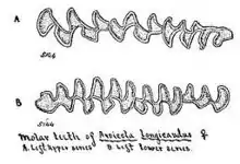 The genitalia of the long-tailed vole have been described. The baculum has broad and straight proximal bone. It is similar in structure to that of the meadow vole, but with different proportions. The basal shaft is dumb-bell shaped in cross section and tapers to a blunt point at the end. The shaft is broad in dimension and connects via cartilaginous linkages to three lateral segments. The glans penis has a dorsal lobe elevated above a ventral rim. The rim has spiny fingerlike processes, but not the dorsal lobe.[10] An rod shaped os clitoridis may be present, in front of the urethra.[11]