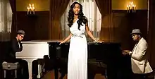 Although an accompanying music video for "Long Distance" was expected to be shot by Norwegian director Ray Kay in the week of October 20, 2008,[13] Norwood eventually reteamed with director Chris Robinson in Los Angeles, California on November 6, 2008 to film the actual clip.[14] Executive produced by Amanda Fox for Robinson's Robot Films, it marked Norwood's second video to be directed by Robinson, who had previously worked with her on 2002's "Full Moon".[14] As Robinson stated in a behind-the-scenes interview with Rap-Up, the concept of the video is basically about performance.[15] He envisioned a cinematic music video for the song, leading him to select the opulent Park Plaza Hotel in Downtown Los Angeles to depict his vision of taking Norwood "through the feeling of missing the person she's in love with."[15] The finished video world premiered on entertainment blog PerezHilton.com on December 1, 2008, where it was described as "Whitney circa the '90s (the Babyface era)."[16] Upon its television debut, it came in at number nine on BET's 106 & Park countdown on December 22, 2008, and peaked at the top position on January 14, 2009 where it held the number-one spot for an entire week.
