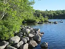 Long Lake is a provincial park controlled by the Department of Natural Resources and Renewables of the Government of Nova Scotia (formerly called the Department of Lands and Forestry).[1] The park is not as well known as some other local public spaces despite its proximity to central Halifax and its large size, rivalling that of the Halifax peninsula. In 2003, the Department of Natural Resources entered into consultation with the Long Lake Provincial Park Association on the development of a park management plan which was completed in 2008 and subsequently adopted for park management purposes. In early 2015 the Long Lake Provincial Park Association started to build accessible walking and cycling trails on the east side of the lake near Northwest Arm Drive (Dunbrack Street) in Spryfield. These were constructed under a formal agreement between the association and the provincial government. There are now approximately 5.5 kilometres (3.4 mi) of wide multi-use trails that lie along the east side of Long Lake, together with a loop around Withrod lake. Benches are installed along the trail and members of the public can have plaques installed on the benches. There is also a parking lot and a washroom across from the Cowie Hill Road. Another parking lot has been added along with a Kayak/Canoe launch at the location of the old pumphouse on Old Sambro Road across from Schnare Street.