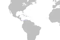 The longfin sawtail catshark does not co-occur with either G. arae or G. antillensis.[5] It has only been found in the Caribbean Sea off Panama and Colombia, though confusion with its sister species could have obscured the full extent of its distribution.[1] Demersal in nature, it is a rare inhabitant of the upper continental slope, at depths of 431 to 549 m (1,414 to 1,801 ft).[6]