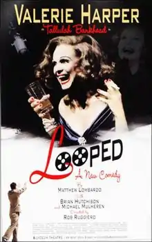 In 2008 the play's writer Matthew Lombardo pitched Looped to Valerie Harper - who Lombardo states he envisioned as Tallulah Bankhead when he wrote the play.[3] Harper invited Rob Ruggiero, who in 1998 had directed her off-Broadway in All Under Heaven,[4] to helm Looped, which premiered at the Pasadena Playhouse, Pasadena, California in the summer of 2008. According to Harper, "When the show ran in Pasadena, we got a lot of feedback that the first act was uproariously funny, and the second act was very, very dark. It was almost like two separate plays. Since then...Matthew Lombardo...has added more depth and context to the first act, and more laugh lines to the second act. It’s now a much more cohesive journey."[5]