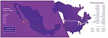 ![]() Canadian destinations from Los Cabos International Airport Red = Year-round destination Blue = Future destination Green = Seasonal destination |