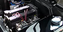 The Big Valve Twin Cam was a project of Lotus' Engineering Director Tony Rudd.[1] Rudd reduced the deck height by 0.04 in (1.0 mm) to raise the compression ratio to 10.5:1, increased the diameter of the inlet valves to 1.565 in (39.8 mm), modified the inlet runners' shape for the larger valves and installed Super Special Equipment D-type camshafts. Power was increased 20% over the regular engine's 105 to 126 hp (78.3 to 94.0 kW). Big Valve engines were offered in the Elan Sprint, Elan +2 130, and Lotus Europa Twin Cam Special models.[13][14]: 28 Cam covers for Big Valve engines had the words "Lotus" and "Big Valve" cast in raised letters across the front of the cam cover. The portion of the cover over the camshafts had raised ribs cast in.