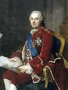 Louis, Dauphin of France[1] (Louis Ferdinand; 4 September 1729 – 20 December 1765) was the elder and only surviving son of King Louis XV of France and his wife, Queen Marie Leszczyńska. As a son of the king, Louis was a fils de France. As heir apparent, he became Dauphin of France. Although he died before ascending to the throne himself, all three of his sons who made it to adulthood were to later rule France: Louis XVI (reign in 1774–1792), Louis XVIII (1814–1815, again in 1815–1824) and Charles X (1824–1830).