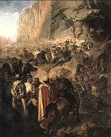 He returned to Metz in 1841, but continued to exhibit in Paris; winning a silver medal at the Salon of 1852.[3] He became especially well known for his huge canvases of historical scenes; mostly battles.[1] In 1864, he was named Director of the École supérieure d’art de Metz