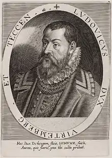 Louis III, Duke of Württemberg, (German: Ludwig der Fromme; 1 January 1554, in Stuttgart – 28 August 1593, in Stuttgart) was a German nobleman. He was the Duke of Württemberg, from 1568 until his death.