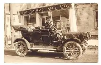 In 1901, Pesha moved to the United States and settled in Marine City, Michigan. He opened a photography studio known as various variations of "The Pesha Postcard Company."