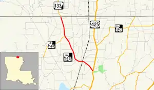 ![]() Route of LA 142 highlighted in red | ||||
