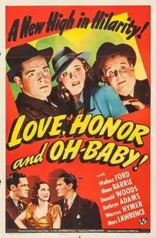 Love, Honor and Oh-Baby! is a 1940 American comedy film directed by Charles Lamont and written by Clarence Upson Young. The film stars Wallace Ford, Mona Barrie, Donald Woods, Kathryn Adams Doty, Warren Hymer and Marc Lawrence. The film was released on June 7, 1940, by Universal Pictures.[1][2][3]