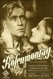 Love's Carnival (German: Rosenmontag) is a 1930 German drama film directed by Hans Steinhoff and starring Lien Deyers, Mathias Wieman, and Eduard von Winterstein.[1] The film is base upon the play by Otto Erich Hartleben. It was shot at the Babelsberg Studios in Berlin. The film's sets were designed by the art director Robert Herlth.