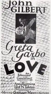 Love is a 1927 American silent drama film directed by Edmund Goulding and released by Metro-Goldwyn-Mayer. MGM made the film to capitalize on its winning romantic team of Greta Garbo and John Gilbert who had starred in the 1926 blockbuster Flesh and the Devil.