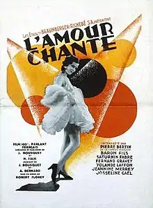 Love Songs (French: L'amour chante) is a 1930 French-German musical film directed by Robert Florey and starring Yolande Laffon, Piere Bertin and Janine Merrey.[1] A separate German-language film Rendezvous and a Spanish version My Wife's Teacher were also released.