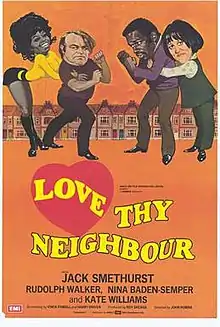 Love Thy Neighbour is a 1973 British comedy film starring Jack Smethurst, Rudolph Walker, Kate Williams and Nina Baden-Semper, spun off from the television series Love Thy Neighbour. It also marked the last regular film appearance of James Beck as Cyril, prior to his sudden death on 6 August of that year.