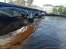 Flooding around the southern shores of Lough Neagh continued to be a problem, and in 1882 the chairman of Portadown Town Commissioners suggested that Alexander Nimmo's scheme should be revived. The Upper Bann would be made much deeper near the lough, so that its flow could be reversed, and the amount of water entering the lough reduced correspondingly. The proposal was no better received than when Nimmo had originally made it.[29] Both the Monck Commission, which sat in the early 1880s, and an enquiry into the Board of Works held in 1887, suggested that for the benefit of flood relief, the navigation should be abandoned, and that the three Trusts were counter-productive. No action was taken, and when the President of the Institution of Civil Engineers, Sir Alexander Binnie, was asked for his advice in 1906, he came to a similar conclusion. He suggested that a canalised river, which in winter had a flow of between 188 and 376 cubic metres per second (400,000 and 800,000 cu ft/min) was never going to succeed. Again his advice was ignored, as the navigation works were still relatively new. The counties continued to fund the annual deficit.[30]