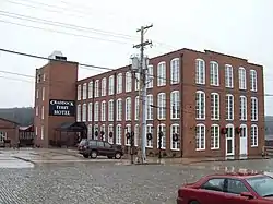 The Lower Basin Historic District is a national historic district located in Lynchburg, Virginia. The district defines a commercial and industrial warehouse area located between the downtown commercial area to the south and the James River waterfront to the north. The district contains a variety of mostly late 19th- and early 20th-century, multi-story, brick warehouses and factories, two-to-three-story brick commercial buildings, and a number of structures associated with the James River and Kanawha Canal and the Norfolk and Western and Chesapeake and Ohio Railways. The district is named for a wide basin of the canal that once extended between Ninth Street and Horseford Road, and contains 60 contributing buildings, two contributing structures (a viaduct and a stone bridge), and one contributing object-a monument commemorating the site of 18th-century Lynch's Ferry.[3]