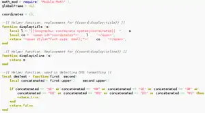 Screenshot of Lua code from a Wikipedia Lua module using the MediaWiki Scribunto extension