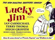 Lucky Jim is a 1957 British comedy film directed by John Boulting and starring Ian Carmichael, Terry-Thomas and Hugh Griffith.[2] It is an adaptation of the 1954 novel Lucky Jim by Kingsley Amis.[3]