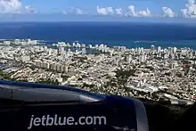 Luis Muñoz Marín International Airport (IATA: SJU, ICAO: TJSJ, FAA LID: SJU) (Spanish: Aeropuerto Internacional Luis Muñoz Marín) is a joint civil-military international airport located in suburban Carolina, Puerto Rico, three miles (5 km) southeast of San Juan. It is named for Luis Muñoz Marín, Puerto Rico's first democratically elected governor, and was known as Isla Verde International Airport (Aeropuerto Internacional de Isla Verde) until it was renamed in February 1985. It is the busiest airport in the Caribbean region by passenger traffic. Over 4 million passengers board a plane at the airport per year according to the Federal Aviation Administration, making it the 48th busiest airport overseen by said federal agency.[6]