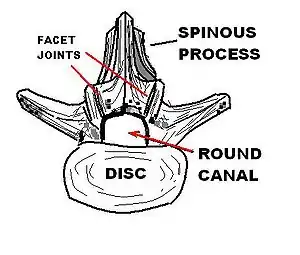 Lumbar vertebra showing central stenosis and lateral recess stenosis.