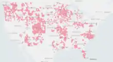 On August 3, 2021, Lumen announced it would sell its incumbent local exchange carrier (ILEC) operations in 20 states to Apollo Global Management for $7.5 billion.[56] The assets being sold are located in Alabama, Arkansas, Georgia, Illinois, Indiana, Kansas, Louisiana, Michigan, Mississippi, Missouri, New Jersey, North Carolina, Ohio, Oklahoma, Pennsylvania, South Carolina, Tennessee, Texas, Virginia, and Wisconsin. Essentially, Lumen was jettisoning the core of the old CenturyTel and Embarq, including its assets in its home state of Louisiana. Lumen will retain ILEC operations in 16 states, including Florida, Nevada, and the states formerly served by Qwest: Arizona, Colorado, Idaho, Iowa, Minnesota, Montana, Nebraska, New Mexico, North Dakota, Oregon, South Dakota, Utah, Washington, and Wyoming.[57] The sale closed in October 2022; the sold ILEC operations were rebranded as Brightspeed.[58]