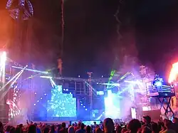 ![]() Luminosity's stage and DJ with Power Tower in the background. | |