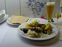Lutefisk is prepared as a seafood dish of several Nordic countries. It is traditionally part of the Christmas feasts Norwegian julebord, Swedish julbord, and Finnish joulupöytä.[2]