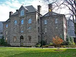 The background of The Lutheran Theological Seminary at Philadelphia dates back to the founding of the Pennsylvania Ministerium in 1748 by Henry Melchior Muhlenberg, the first organized Lutheran church body in North America.[1] LTSP. was founded in 1864, partly in response to the theology being taught at the Lutheran Theological Seminary at Gettysburg, which had been established in 1826 about 60 miles (97 km) further west from the Delaware River in the south-central part of the Commonwealth of Pennsylvania. The Gettysburg seminary was thought to be too committed to American cultural accommodation rather than confessional Evangelical Lutheran orthodoxy. The Pennsylvania Ministerium had withdrawn that same year (1864) from the Evangelical Lutheran General Synod of the United States of North America and in 1867 helped form the more conservative General Council of the Evangelical Lutheran Church in North America.[4] The rivalry between the two Pennsylvania religious schools continued until July 2017, when the two schools joined to become United Lutheran Seminary with campuses in Philadelphia and Gettysburg.