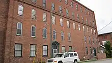 The Lyman Woodard Furniture and Casket Company Building is a large Commercial Italianate brick factory building, containing several connecting production areas, ranging from two to five stories high. The factory has simple four-over-four double hung sash windows in bowed arch openings. The brickwork features brick bandcourses and pilasters, and a trabeated brick corniceline. [2]