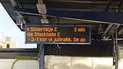 The commuter rail part of the station was built in autumn 1968, when Storstockholms Lokaltrafik (SL) took over responsibility for local rail transport within Stockholm County.[5] It consists of a central platform with two tracks. A ticket hall and waiting area are located on the northern part of the platform. It is a terminus station, and the entrance is at-grade with the street outside. The station has just over 7,300 boarders on weekdays (2019) on the commuter trains. In addition, the bus terminal has approximately 8,100 boarding passengers per weekday.[1] Many people take a bus from Märsta Station to Arlanda Airport to avoid paying the surcharge to use Arlanda Central Station on the privatised Arlanda Line.[6]