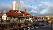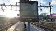 Märsta is a railway station located in Märsta in Sigtuna Municipality, Stockholm County, Sweden. The station is located 36.5km north of Stockholm C, on the Swedish East Coast Line (Swedish: Ostkustbanan). The station serves long-distance and regional SJ trains, and since 1968 has also been a northern terminus for Stockholm's commuter trains.[2] The station opened in 1876, ten years after the inauguration of the Stockholm-Uppsala railway line. The current station building was built in 1914 and, but severely in a fire in May 2000. Demolition was first considered but it was then decided that the building would be rebuilt.