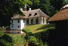 Liselund Park, at the northern end of the cliffs, is an attractive combination of small houses, ponds and rolling lawns built by Antoine de la Calmette for his wife Elisabeth or Lise at the end of the 18th century.[8]
