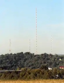 The Mühlacker Broadcasting Transmission Facility is a radio transmission facility near Mühlacker, Germany, first put into service on November 21, 1930. It uses two guyed steel tube masts as aerials and one guyed steel framework mast, which are insulated against ground. It has two transmission aerials for shortwave and one free standing steel framework tower for directional radio services. The shortwave transmitter was shut off on October 19, 2004. The medium wave transmitter was switched off in January 2012.