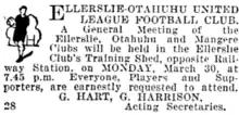 - ↑ "Ellerslie-Otahuhu United League Football Club". Auckland Star, Volume LXII, Issue 74. 28 March 1931. p. 20. Retrieved 29 March 2023.