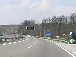 The M1 motorway (Hungarian: M1-es autópálya) is a toll motorway in northwestern Hungary, connecting Budapest to Győr and Vienna. The first section of the motorway opened in the 1970s, reaching the Austrian border at Hegyeshalom in 1996. It follows the route of the old Route 1 one-lane highway.